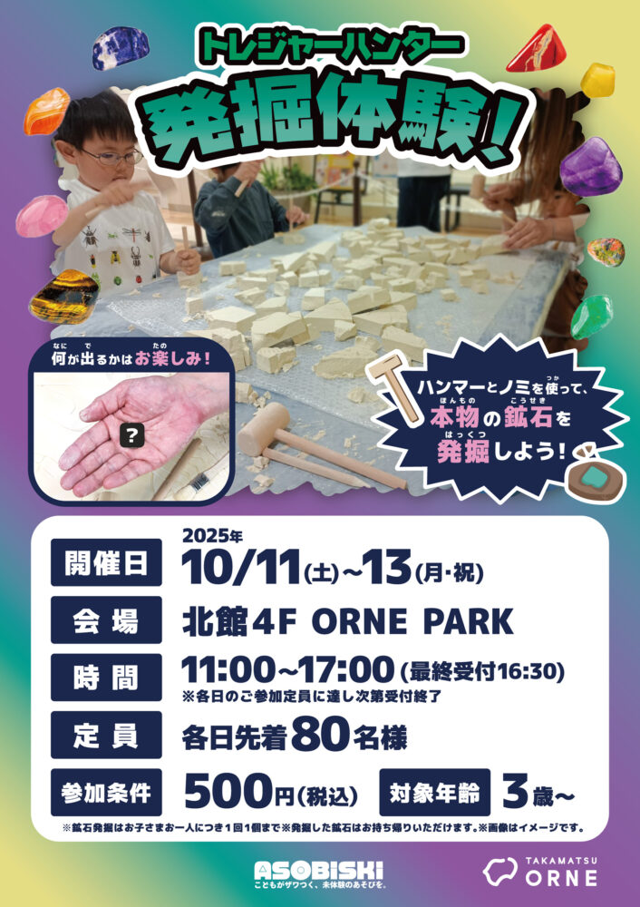 香川県高松市|10月11日(土)~13日(月) トレジャーハンター発掘体験! 鉱石を発掘しよう!!(当日受付・3歳~対象)