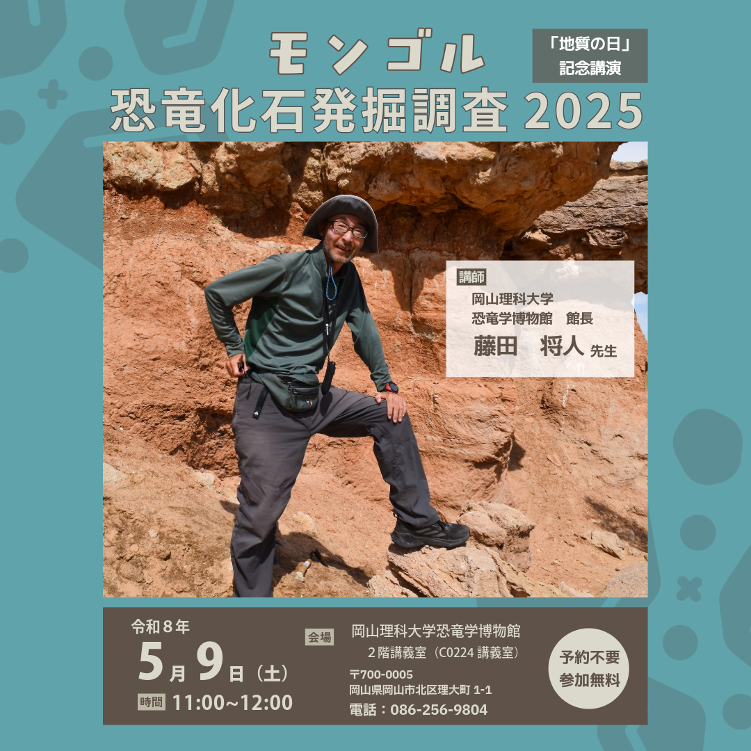 岡山県岡山市|5月9日(土) 地質の日記念講演「モンゴル恐竜化石発掘調査 2025」(予約不要)