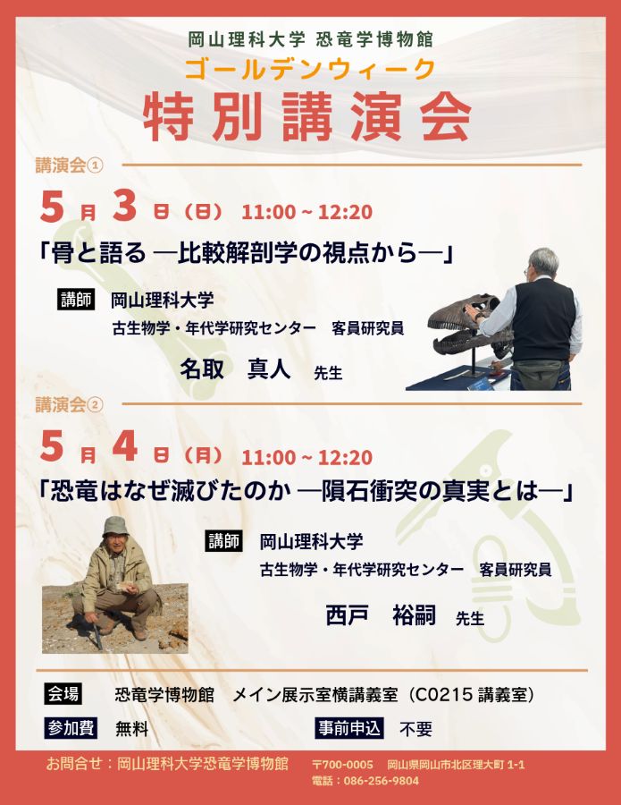 岡山県岡山市|5月4日(日) ゴールデンウィーク特別講演会「恐竜はなぜ滅びたのかー隕石衝突の真実とはー」(予約不要)