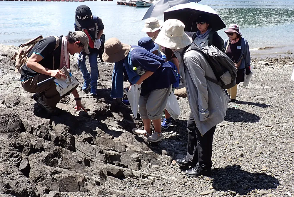 参加者は、御所浦の古屋敷海岸やドンバ崎を訪れ、地層の観察や化石採集を行います。さらに、採集した化石のクリーニングにも挑戦。また、学芸員の案内による博物館特別展並びに常設展の見学、館長による講話も予定しており、自然への興味関心を深める絶好の機会です。