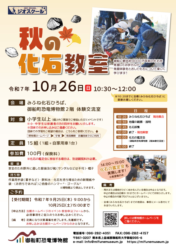 熊本県御船町|10月26日(日) ジオスクール『秋の化石教室』(事前予約要(受付中)・小学生以上)