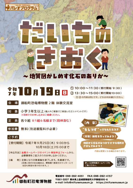 熊本県御船町|10月19日(日) パレオプログラム『だいちのきおく〜地質図がしめす化石のありか〜』(事前予約要(受付中)・小学3年生以上対象)