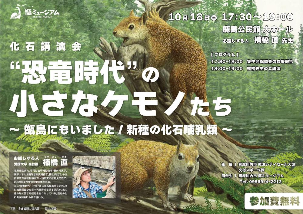 鹿児島県薩摩川内市|10月18日(土) 化石講演会「恐竜時代の小さなケモノたち~甑島にもいました!新種の化石哺乳類~」(申込不要)