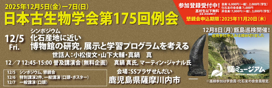 鹿児島県薩摩川内市|12月5日(金)~7日(日) 日本古生物学会第175回例会(例会は事前予約要)