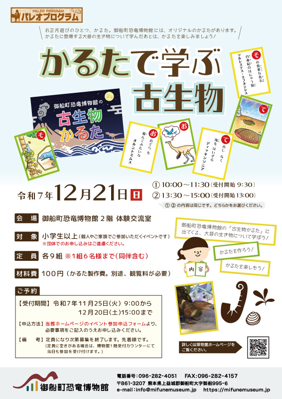 熊本県御船町|12月21日(日) パレオプログラム「かるたで学ぶ古生物」(事前予約要(先着順)・11/25 9:00申し込み開始・小学生以上対象)