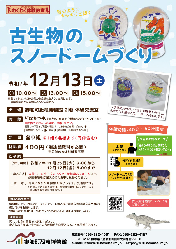 熊本県御船町|12月13日(土) わくわく体験教室「古生物のスノードームづくり」(事前予約要(先着順)・11/25 9:00申し込み開始)