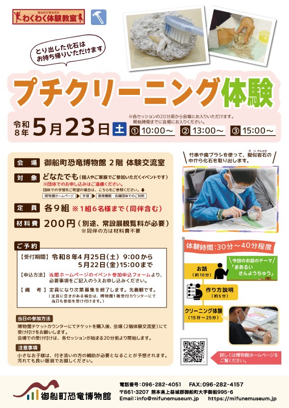 | 料金 | イベント当日に有効な特別展入場券(同伴者も必要)、教材費450円(体験者のみ) |