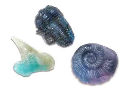 アンモナイトや三葉虫、サメの歯など、本物の化石からとった型を使って、化石の樹脂レプリカを作ろう!裏にマグネットを付けて仕上げます。